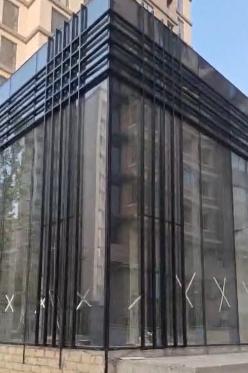✔ Spider (transparent) fasad – maksimal şəffaflıq təmin edir